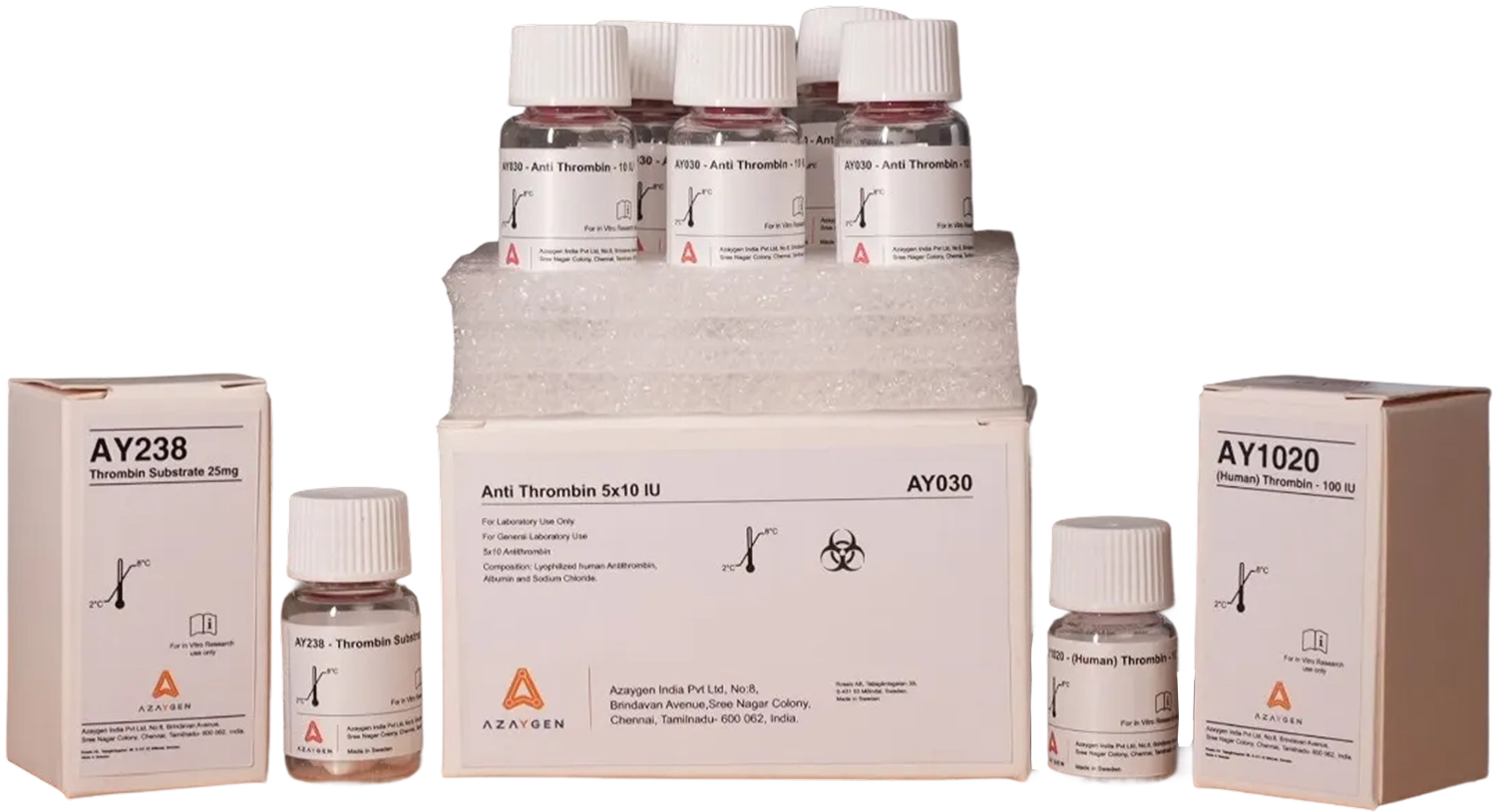 Azaygen India is engaged in the anticoagulation and haemostasis space with a strong focus on chromogenic Anti-FXa, Anti-FIIa and factor assay reagents for Heparin, LMWHs and blood plasma products in pharmaceutical quality control and research settings. In the platelet domain, we offer PPlus Medical solutions, including Collagen-Related Peptide A and a digital storage device designed for room-temperature storage of platelet-rich plasma, supporting translational and applied research. Additionally, through our association with Randox, we provide access to the Evidence MultiSTAT system for high-throughput, multi-analyte testing. Together, these offerings reflect our commitment to enabling robust science and supporting the advancement of pharmaceutical development and research